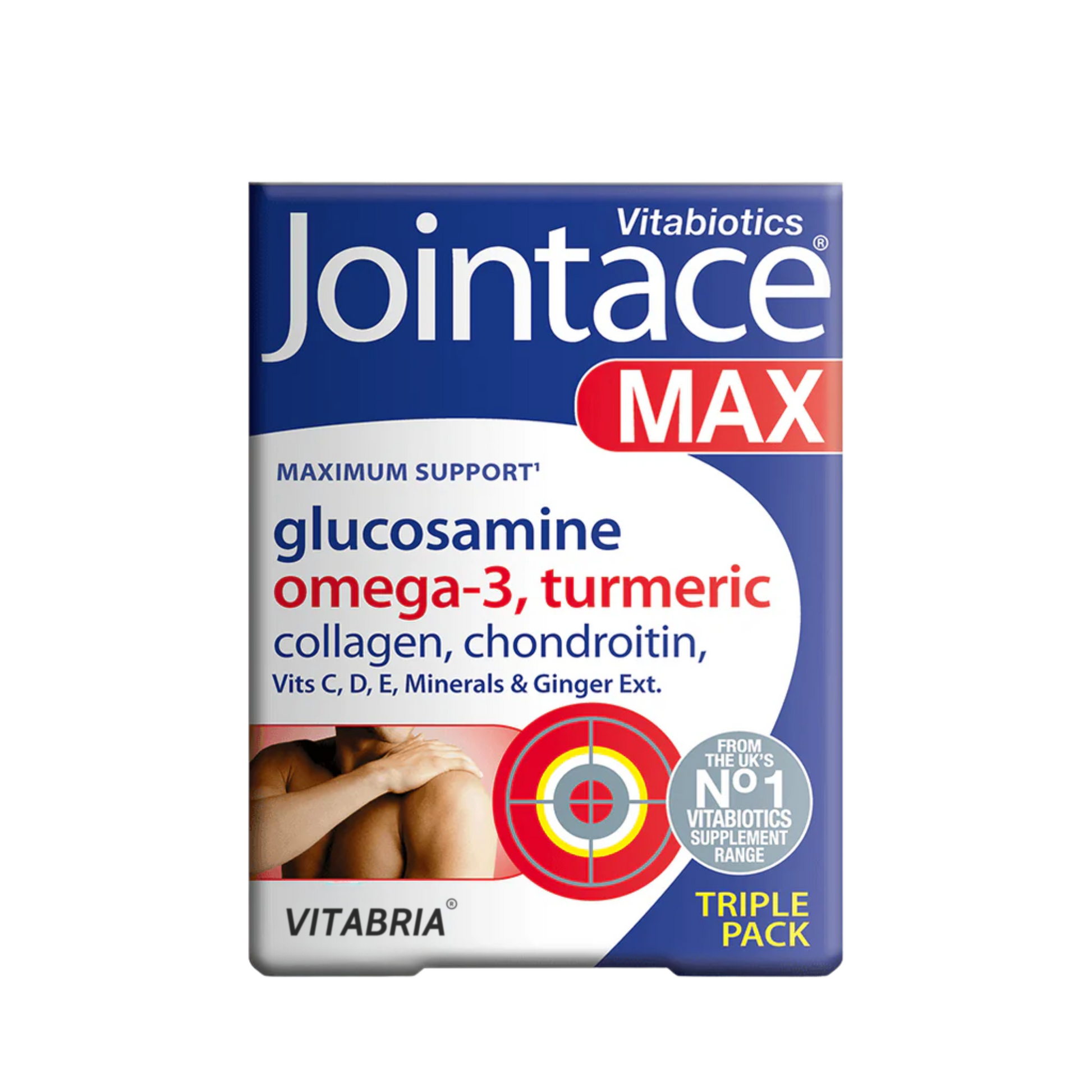 Good things come in threes – and Jointace Max gives you triple support with Collagen, Glucosamine, Turmeric, Chondroitin, and super-strength Omega-3 in one box.